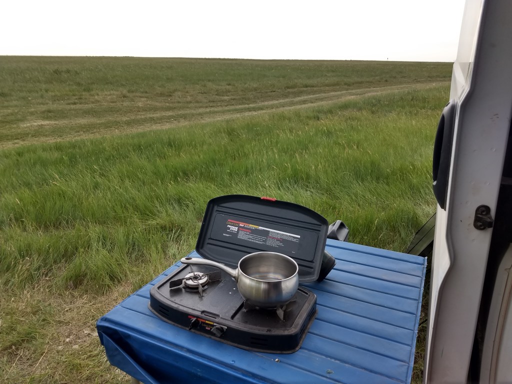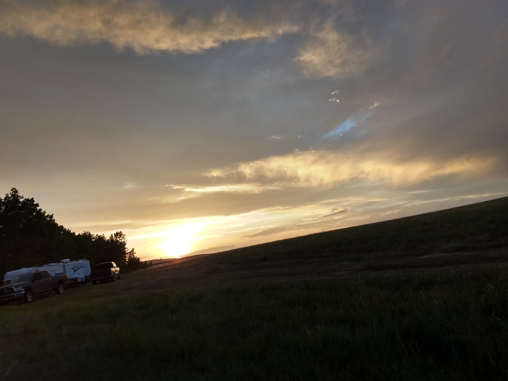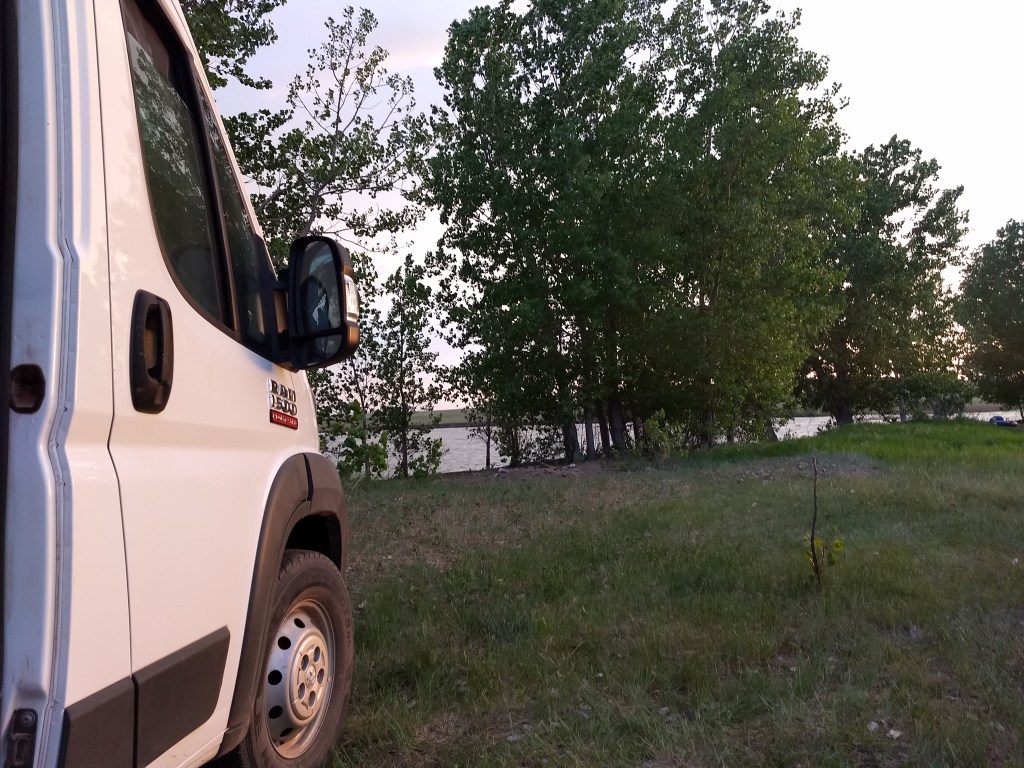 Sabbath morning I went on over the Spearfish church. Very nice building and great people there, I always enjoy visiting there. That morning the worship service was about fear the closing song was ” Any Where with Jesus” It was a perfect song a reminder to me. Because of the virus, they did not have a fellowship lunch. The wind was super high and a very warm afternoon, I decided not to go too far. Friday I had stopped at the Belle Fourche Reservoir and campground and talked to the lady at the entrance to the campground and she said that one could camp any where along the lake outside of the campground for free. There would not be any amenities but that was okay for I had all I needed. So I found a place along the lake, parked so that the wind was to my back and just enjoyed the afternoon.