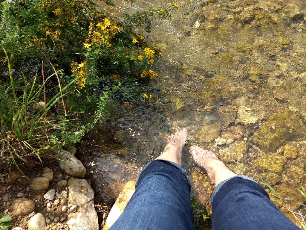 After church I went into town and stopped by a little creek that ran through took off my socks and shoes and put my feet in the cool water then called my sis. Today was my birthday and we always have a good visit.