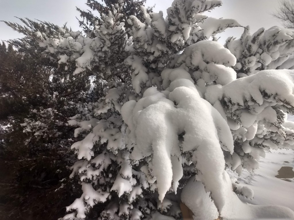 Friday morning I woke up to snow on the ground. But I went out anyway to do a little bit of shopping. Then on Sabbath I went on to the church for the services there then they Fellowship lunch. That afternoon I drove back to the farm. Part way back the wind had gotten so bad that I decided that it would be best to pullover for a while then maybe it would calm down. I waited an hour or so and then headed back to the farm.